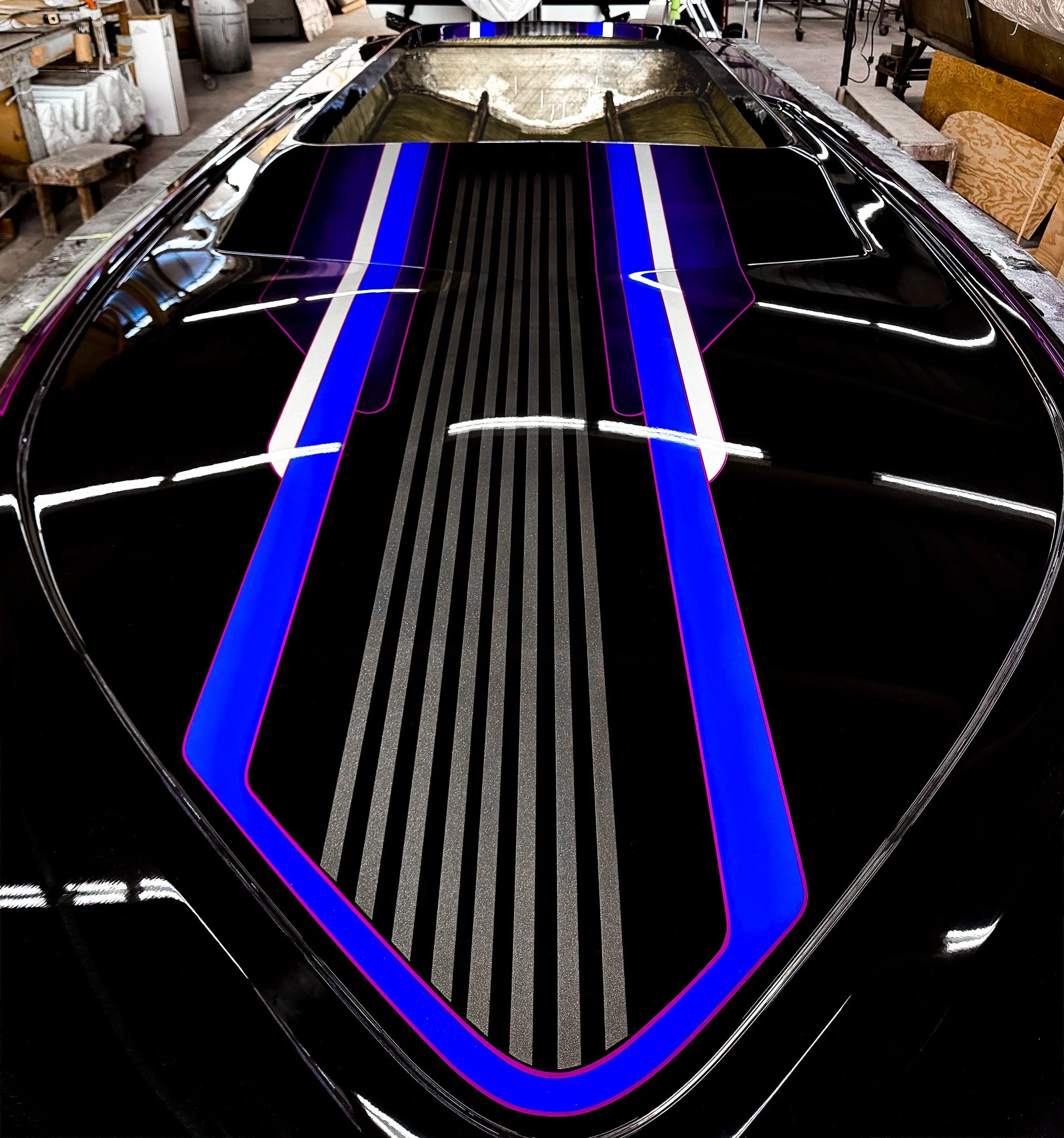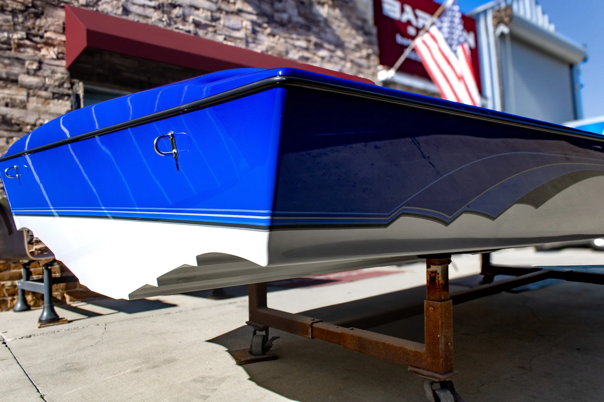 We have multiple pictures showcasing our Barron 192 bare hulls with different gel coat designs.