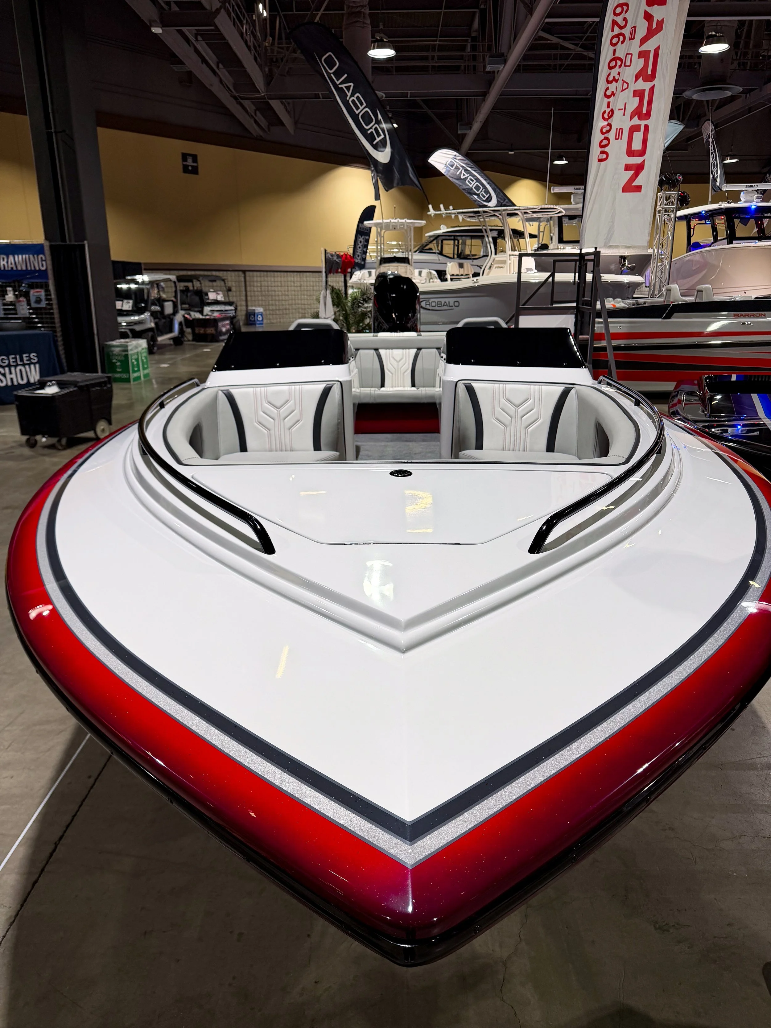 We have multiple pictures showcasing both of our Barron 242s fresh out of the mold as well as our Blue 242 at Desert Storm ‘25 and the Lake Havasu Boat Show.
